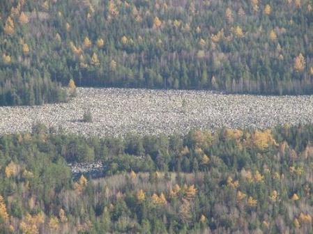 石头河位于巴什科尔托斯坦共和国的别洛列茨克地区,形成于10000年前的冰川地质活动。长度达到6公里,平均宽度200米,最宽处有700多米。乱石密集程度之高,从天上看下去,就好像是一条波光粼粼的大河,十分壮观。