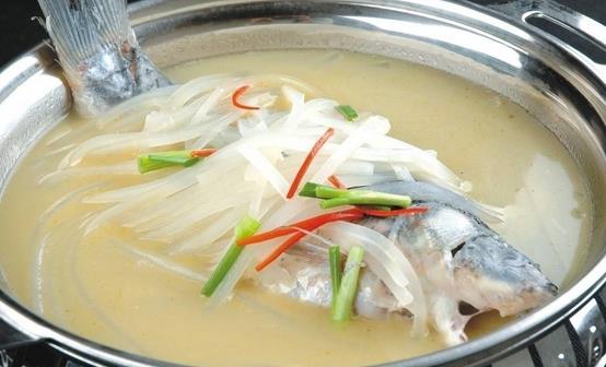 3、要做出香浓味美,奶白色的鱼汤,可先将鱼放入油锅中煎一下,再注入清水炖煮,鱼汤就会变得像牛奶一样白。