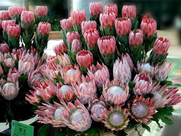 帝王花属的是多年生常绿草本植物,他在鲜花,实际上是一个花球,有很多的花蕊,并且被巨大的,色彩丰富的花苞叶所包围着,帝王花的花径直径在12到35厘米之间,花球的直径大小在12厘米到30厘米之间来回的变动,在一个生长的季节里面溢出比较大,而且非常粗壮的帝王花植株,能够开出6到10个花球。