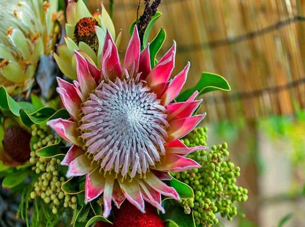 帝王花又被人们称为普蒂亚花帝王花是南非共和国的国花,它的花朵非常的大,花型也是非常的奇特,瑰丽多彩,高贵优雅,被人们称之为花中之王,久开不败的帝王花,被誉为全世界最富贵华丽的鲜花,代表着旺盛而且又非常顽强的生命,并且还象征着胜利,圆满以及吉祥,帝王花的花朵非常的大,看起来特别的好看,具有很高的观赏价值。