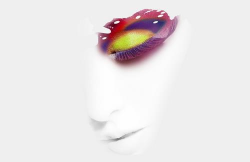 选择珠光白色眼影,用指腹沾适量,按压在眼球的位置,可提亮双眼,也会使得眼妆更加饱满。