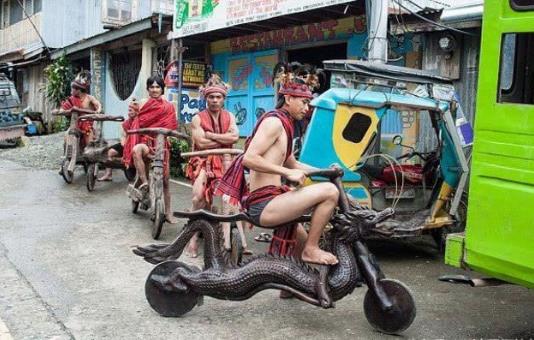 菲律宾一部落的交通工具 造型奇特 刹车完全靠脚相关文章: