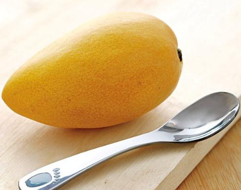 用水果刀背或是金属勺柄轻轻刮遍芒果表皮,然后再剥皮,就会像剥香蕉皮一样轻松了。