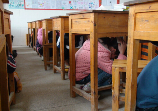 学校,商店,影剧院等人群聚集的场所如果遇到地震,最忌慌乱,应立即躲在课桌、椅子或坚固物品下面,待地震过后再有序地撤离。