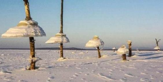 现在,专家们对阿穆尔河流域水库中的“神奇”冰蘑菇有了一个解释。高大的树木被水库淹没了。冬天水位下降,湖水结冰,露出的树干上“长”着冰块。