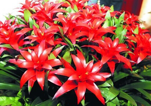 花卉起的是点缀作用,其摆放与主人家里的装修风格紧密联系。根据主人的喜好会将家里布局为不同的风格,如简约风,欧美风,老人家的复古风,年轻人的非主流等等。作为凤梨花中的领头军,鸿运当头这种有着艳丽花芯并带有非常美丽而特别的莲座叶子植物,可以适用欧式、中式或简约的装修风格,让家里带有自然的气息。在客厅的一角配上一盆艳丽的鸿运当头,使你的客厅显得更有生气,尤其是中间的红花,吸引大家的眼光,有种“万绿丛中一点红”的感觉。鸿运当头可以增加室内湿度,美化环境,也可以制造氧气,消除神经紧张和视觉疲劳。当你精神困倦时,可以看看身边的鸿运当头,让自己思绪开阔,松弛紧张的神经。鸿运当头喜半阴的环境,适合放在厅堂、案头、客厅、办公室、会议室等地方。想像可以在悠闲的时候欣赏到这么招人喜爱的花卉,心情自然也会感到舒畅。