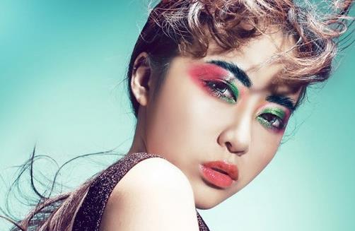 刷扫腮红时可以分两个颜色,较明亮的颜色画圆形,增加可爱度,较深的红色可以画斜线,打造小脸的立体效果。
