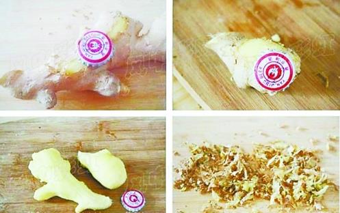 这就是啤酒瓶盖!废物利用,不用花钱,而且真是很好用,用它在姜表面轻轻刮,姜皮就轻松刮下来了,而且仅是薄薄一层!