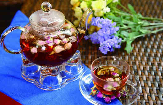 玫瑰花茶:用玫瑰花煲茶,时时饮用,对容易紧张者具有保养的作用。