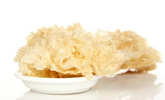 质量好的银耳耳花大而松散,耳肉肥厚,色泽呈白色或略带微黄,蒂头无黑斑或杂质,朵形较圆整,大而美观。如果银耳花朵呈黄色,一般是下雨或受潮后烘干的。如果银耳色泽呈暗黄,朵形不全,呈残状,蒂间不干净,是属于质量差的。如果有刺鼻的味道,说明其中二氧化硫的残留量较多。二氧化硫易溶于水,所以食用前可以先将银耳浸泡3~4小时,其间每隔1小时换一次水。