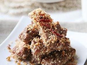 金蒜生炒排骨是将大蒜粒先炒成金黄后再加入事先炸好的排骨以及面包屑,这种做法也可以叫做“避风塘炒排骨”,属于避风塘菜系。“避风塘菜系”源自香港避风塘地区的一种烹饪方法,以避风塘炒蟹最为出名,而后衍生出避风塘茄子、避风塘炒虾等等,从而形成避风塘菜系,至于现在很多城市出现的避风塘茶楼,那是另外一回事。