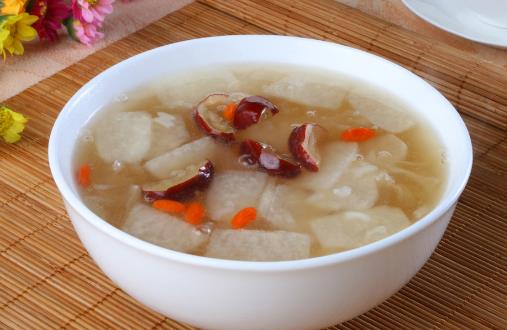 能润肺化痰、养阴生津,做菜肴或炖煮食用,可治疗阴虚肺燥、干咳无痰或痰多粘稠、咽干口渴等症,与百合做羹食用疗效尤佳。