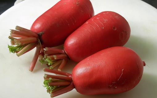 水萝卜,含水量95、3%。水萝卜非常适合春夏吃,它具有甜辣的口味、鲜艳的颜色和爽脆的质地,很适合与其他蔬菜一起拌沙拉吃。