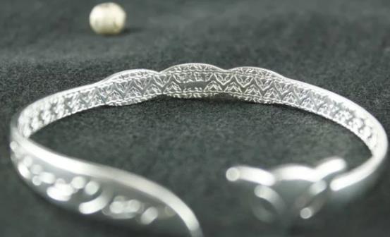 ⒉折弯法:用手轻折银首饰.易弯不易断的成色,僵硬.勉强折动的成色较低,经折弯或用锤子敲几下就会裂开的为包银首饰,经不起轻折.且易断的为假货.