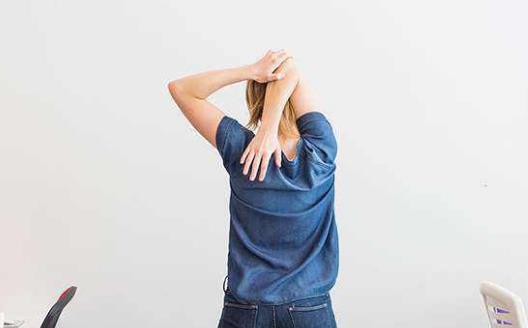 坐在凳子上,保持腰杆的挺直,抬头挺胸,双臂高举在头上,右手握住左手手腕,双腿在脚腕处交叉。然后腰部向右侧弯下,用右手施力辅助,将左臂拉下,从左边大腿经过腹部一直延伸至右上方,左右重复,各保持十秒钟。