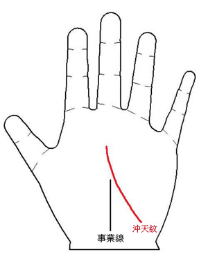 笔者见过几位冲天纹压事业线的女生,五十多岁,人生已走过大半,却并未在婚姻上出现离婚状况,由此可知,个人后天性格上的注意修持,可以导正先天潜在缺失的,不过这些女性倒是都比较有自己主见,较有事业心,然后嫁到的老公都比较宽容包容她,是一特色。