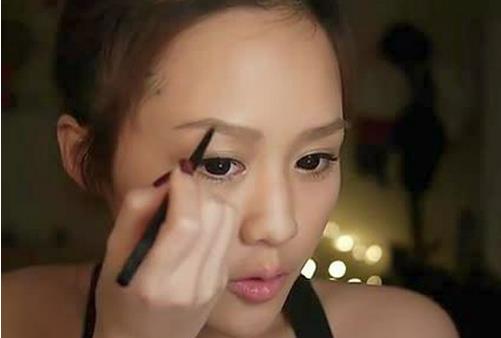接下来,我们需要沿着下眉线图上闪光粉末,需要记住的是,假如纯粹只画出一条线是很难看的,因此我们需要在最后涂在眉线的边缘部分。