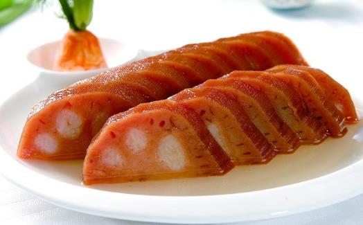 吃藕,能起到养阴清热、润燥止渴、清心安神的作用。花生含有维生素E和一定量的锌,能增强记忆,抗老化,延缓脑功能衰退,滋润皮肤。莲藕与花生两大食物原料相结合,味道鲜美、营养丰富、长期食用能清热祛痘,滋润皮肤。莲藕可保持脸部光泽,有益血生肌的功效。