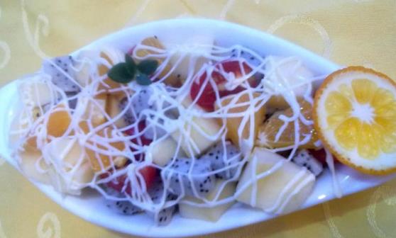 3、 所有水果混合起来加入适量的沙拉酱搅拌均匀即可。