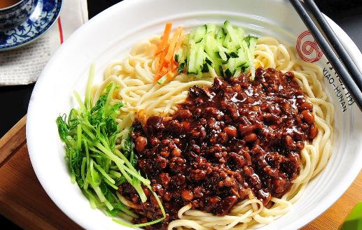 炸酱面是汉族面食,老北京炸酱面在北京十分流行,而上海、广东、东北也有不同制法的炸酱面。韩国亦有炸酱面,是由华侨带入韩国,以春酱(黑豆酱)为调味料,加上洋葱、虾、肉类等。不过摆放相当精致,中间盘放面条,最中央是一撮紫色的炸酱,像一盘工艺品。炸酱面是北京富有特色的食物,由菜码、炸酱拌面条而成。将黄瓜、香椿、豆芽、青豆、黄豆切好或煮好,做成菜码备用。然后做炸酱,将肉丁及葱姜等放在油里炒,再加入黄豆制作的黄酱或甜面酱炸炒,即成炸酱。面条煮熟后,捞出,浇上炸酱,拌以菜码,即成炸酱面。也有面条捞出后用凉水浸洗再加炸酱、菜码的,称“过水面”。