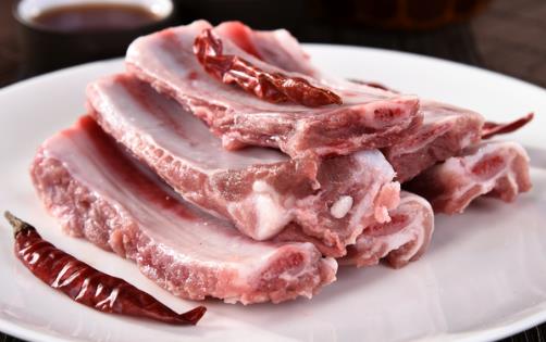 4、要求排骨肉颜色明亮呈红色,用手摸起来感觉肉质紧密,表面微干或略显湿润且不黏手的,按下后的凹印可迅速恢复,闻起来没有腥臭味的为佳。