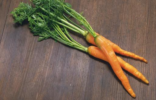 胡萝卜为“果、蔬、药”兼用之品,性平味甘,中医认为其能补中下气、利胸膈、润肠胃、安五脏。现代营养学认为常食能加强体质、进步免疫力和润泽肌肤。用它煲猪排骨则能汤味鲜美甘润,且补中益气。