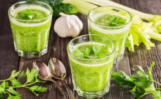 生芹菜汁的热量很低,富含维生素和纤维素,而且还有平肝降压、利尿消肿、清热解毒、缓解 便秘等功效。