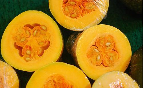 当然不管金黄色南瓜,还是墨绿色南瓜,切开后瓜肉都是橙黄色的,这是丰富胡萝卜素的象征。每百克南瓜胡萝卜素含量高达3100ug,维生素A高达369ug。
