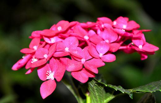 虎刺梅灰绿色的干枝带刺,枝端开出鲜红、玫红的小花。花期长,花色鲜艳,形姿雅致,栽培容易,是人们喜爱的好花。盛开的刺梅花,远看像一粒粒红宝石,又像一颗颗小星星;近看却像小娃娃笑脸。当所有枝头上的花儿开放时,绿叶丛中数点红,更是美丽可爱。