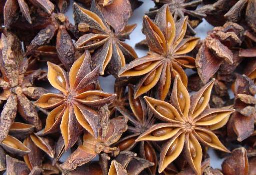 大料:八角茴香(大料)瓣角整齐,一般为8个角,瓣纯厚,尖角平直,蒂柄向上弯曲。味甘甜,有强烈而特殊的香气。