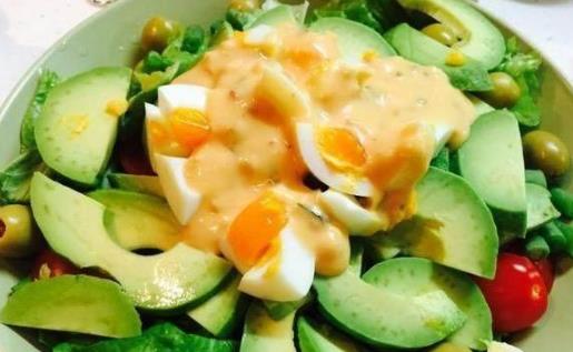 把牛油果切成1立方厘米左右的果粒,搭配上豌豆,玉米和自己喜欢的蔬菜粒(如烫熟了的西兰花,黄瓜,番茄等),然后拌上沙拉酱或番茄沙司,就是一道美味又健康的牛油果沙拉了!