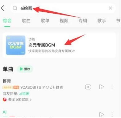 1、首先我们需要将QQ音乐更新到最新版本,然后打开客户端搜索【AI绘画】。