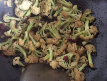 倒入菜花煸炒出香味。