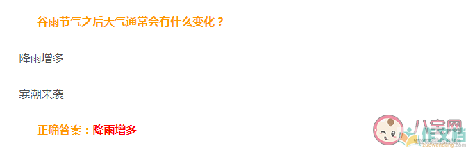 蚂蚁庄园4月20日答案:降雨增多