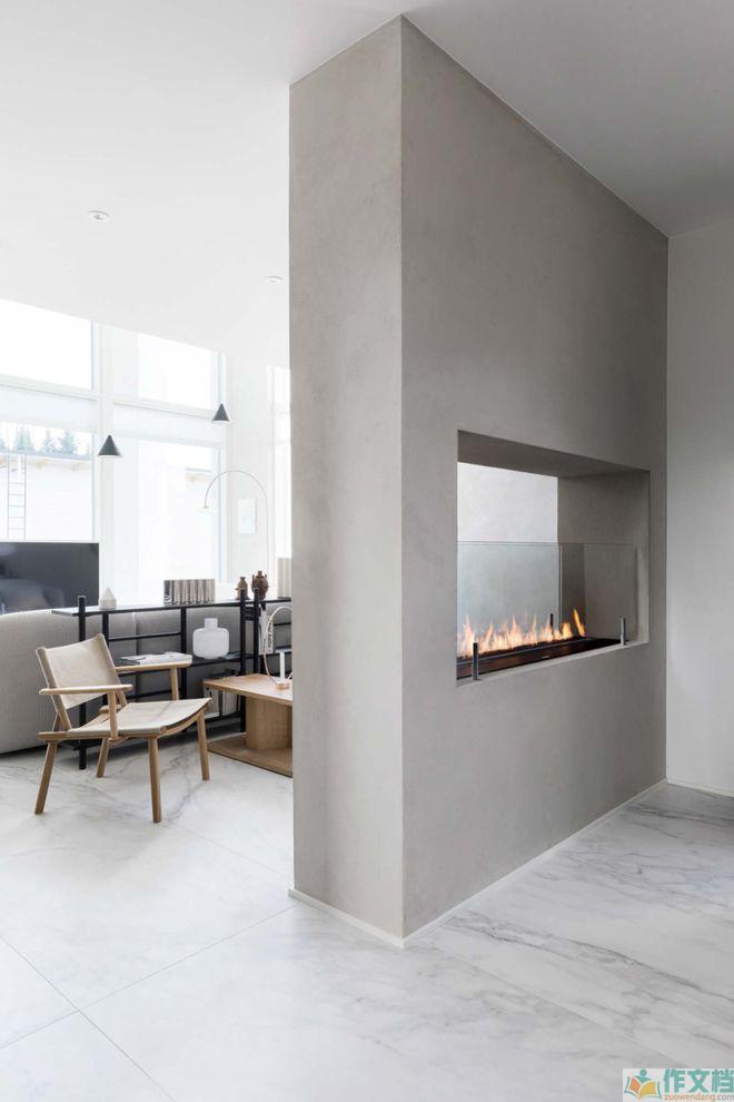 墙体中部设有一个真火壁炉