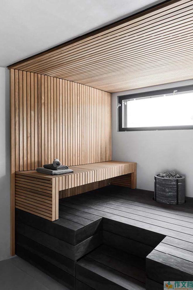 桑拿房用木色格栅条包裹