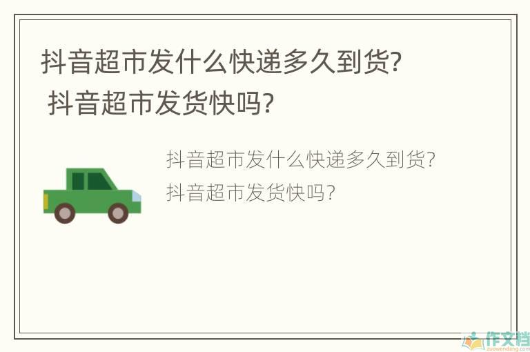 抖音超市发什么快递多久到货? 抖音超市发货快吗?相关文章: