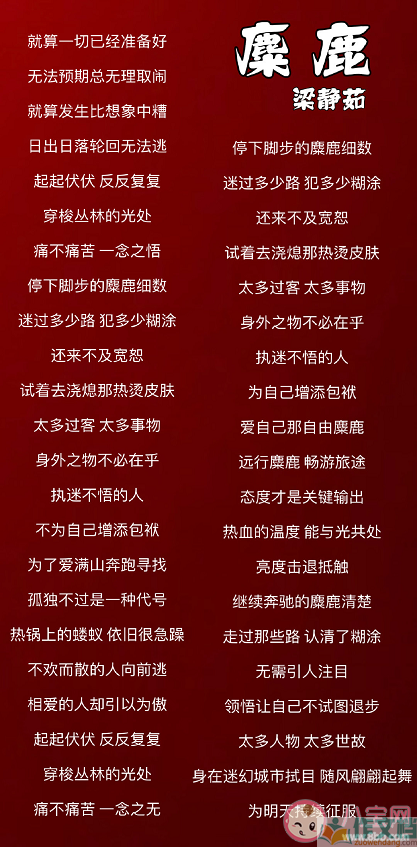 梁静茹发布新歌了,歌曲《麋鹿》已在各大音乐平台上线,人生有时会有迷雾,但迷雾终将散去,《麋鹿》歌词很有寓意,那么,《麋鹿》歌词是什么?下面作文档小编就带来介绍。