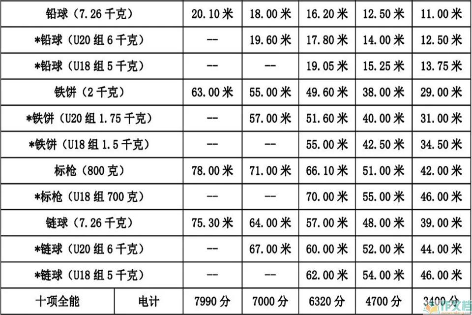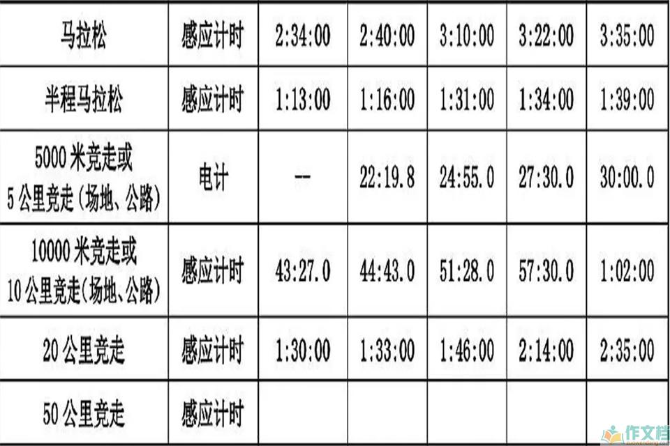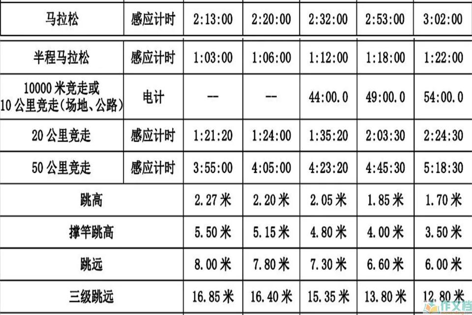 最新运动员等级标准表 男生