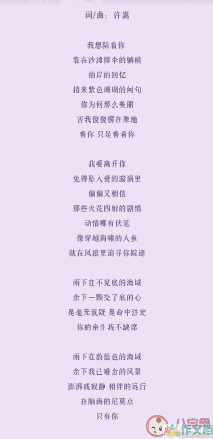 许嵩新歌《只有你》全网上线了,这首歌是给影视剧《鱼生知有你》创作的主题曲,根据剧情作为创作背景,那么,这首歌歌词是什么?下面作文档小编就带来详细介绍。