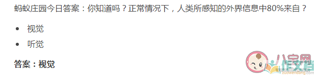 正常情况下人类所感知的外界信息中80%来自什么 蚂蚁庄园7月22日答案