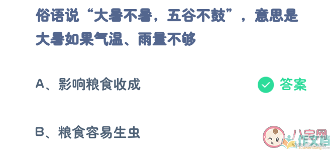 大暑不暑五谷不鼓意思是大暑如果气温雨量不够会怎样 蚂蚁庄园7月23日答案