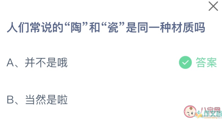 陶和瓷是同一种材质吗 蚂蚁庄园7月27日答案最新
