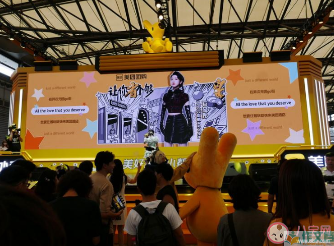 这是什么概念呢?换句话说,通过遍布现场的小型展位以及“外卖员”,美团实际上成功地向逛展的年轻观众输出了自己“不只是能点外卖,还能购买日用百货、甚至数码产品”的业务。显然,这很可能比他们平时在写字楼电梯间里投几个广告、在App里弄一堆弹窗,效果要好得多。