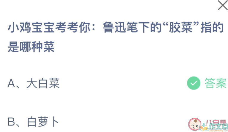 鲁迅笔下的胶菜指的是哪种菜 蚂蚁庄园8月5日答案最新