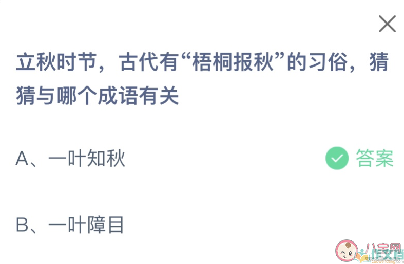 古代有梧桐报秋的习俗与哪个成语有关 2023蚂蚁庄园8月8日答案