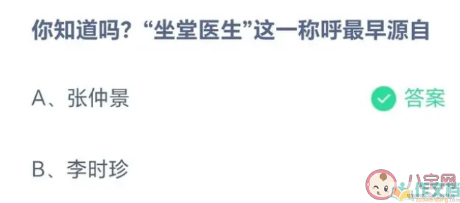 坐堂医生这一称呼最早源自谁 蚂蚁庄园8月19日答案