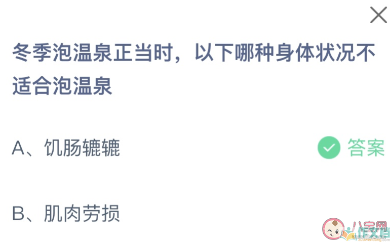 冬季泡温泉正当时以下哪种身体状况不适合泡温泉 蚂蚁庄园12月28日答案