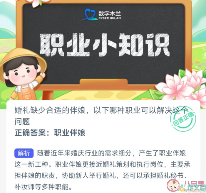 婚礼缺少合适的伴娘以下哪种职业可以解决这问题 蚂蚁新村3月27日答案相关文章: