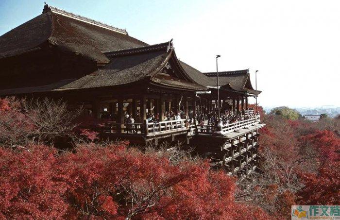 京都清水寺,建于公元778年,是日本重要佛教寺庙,被列为世界遗产。依山而建,本堂由众多木柱支撑,秋季红叶满山,景色绝美。